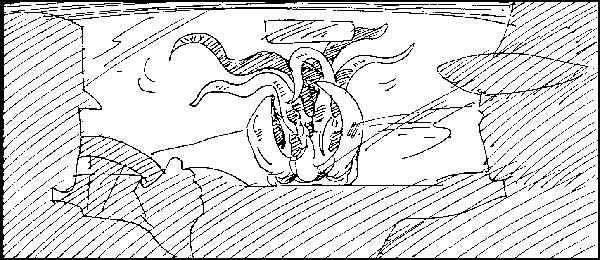 | This is based on an actual prehistoric shrimp-like thing. It was quite large and, as you can see, pretty fearsome looking. Val and Earl are called to battle it when it suddenly begins attacking boaters in a recently flooded dry-lake bed. We were borrowing on the desert brine shrimp, which lay dormant for years until brought to "life" by the infrequent rain. | People are mysteriously disappearing into thin air out in the woods. Their tracks just stop, with no sign of a struggle. Val and Earl eventually discover an arboreal octopus, lurking above to prey on the unsuspecting. |