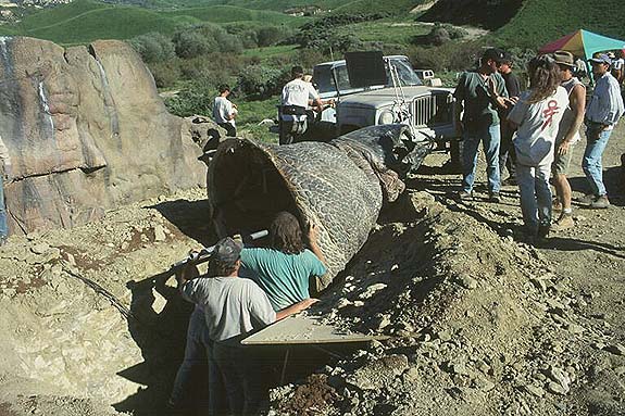 This is on the set of Tremors 2: Aftershocks. It shows the crew with the giant worm, the full scale worm. It is one of the originals that we used in the first tremors that we refurbished for Tremors 2.