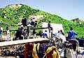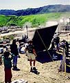To accomplish this effect a large platform with built into the side of a hill and covered with dirt and props to give the set the appearance of being on level ground. A full scale Graboid head was mounted underneath the platform and rigged to pop up through an opening.