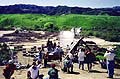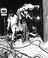 This is what it takes to operate the fully articulated Shrieker.It takes 16 people to operate the fully articulated Shrieker. Each of the levers control a different aspect of the creatures movement. On the films tight budget it was impossible to pay 16 puppeteers to stand around all day and do only 60 minutes of actual work (which is usually the case on large budget films). When filming the Shrieker, cast and crew members were pulled away from whatever else they were doing to operate a lever. Here Tremors Producer Nancy Roberts (left) takes he r turn at the controls. Ron Underwood, (not pictured) director of City Slickers also took his turn right along with everyone else. There were several times when there simply were not enough free people to work all the controls.