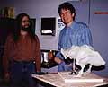 Tremors 2: Aftershocks Director S.S. Wilson (right) and Andy Schoneberg (left) who is Head of Shrieker part of Amalgamated Dynamics Inc., with clay maquette (model) of the Shrieker.